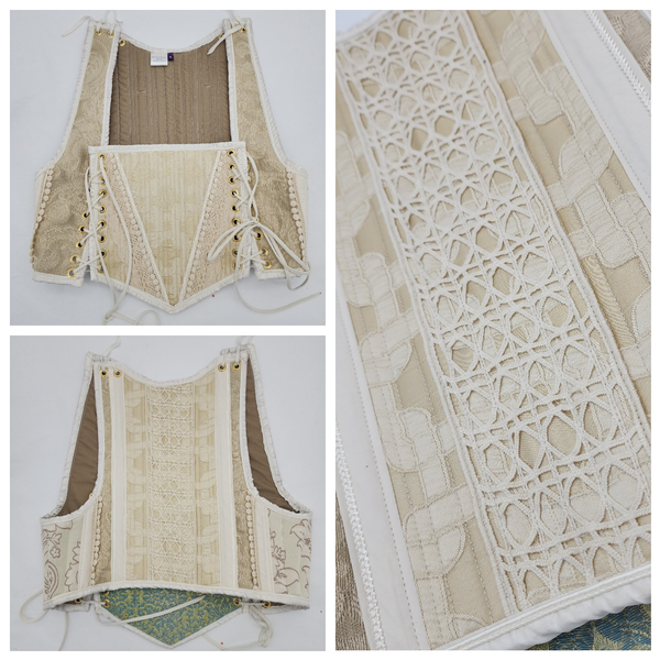Our classic bodice style is heavily boned with a flat steel boning, providing a very sturdy support. It has a square neckline and extends to the high waistline, above the hips. They have ties at the shoulders and two ties at the side front.