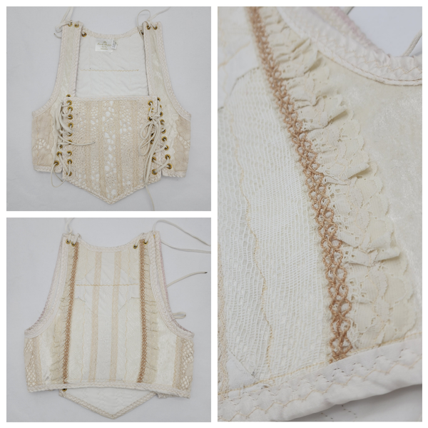 The measurements here give the waistline measurement of the bodice when fully closed. The lacing can be opened up to make the bodice bigger, but not smaller. Because of the handmade nature of our garments, please allow for slight variations in the measurements.