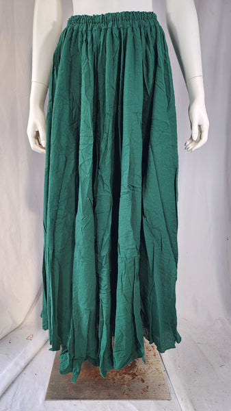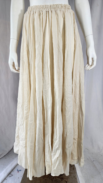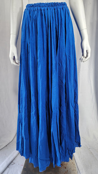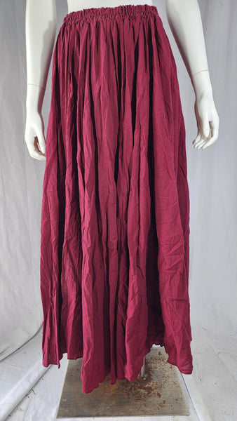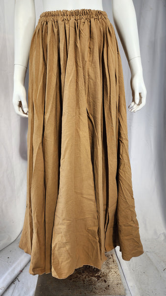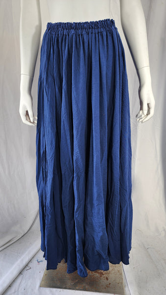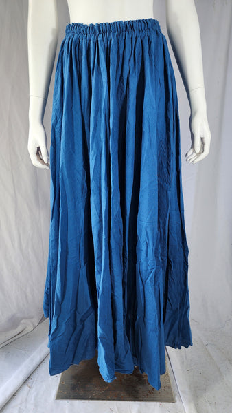This is a simple full length skirt with a straight hemline, made of our medium weight cotton fabric. It has a double elastic waistband and is cut full enough to be worn comfortably on its own, though it looks great as an overskirt as well.