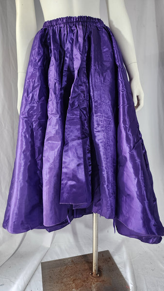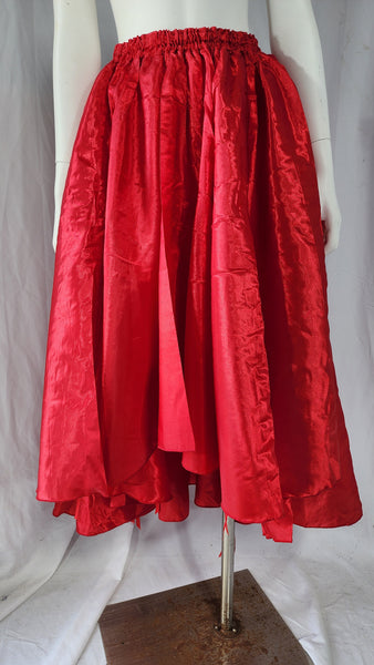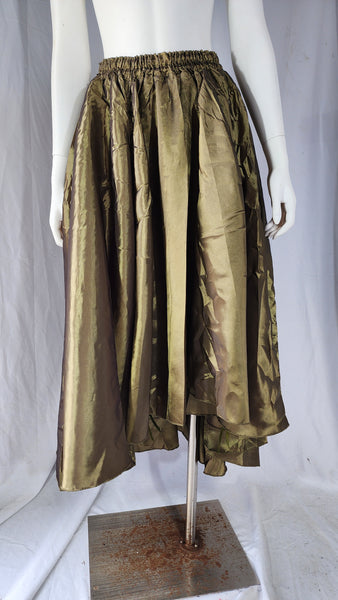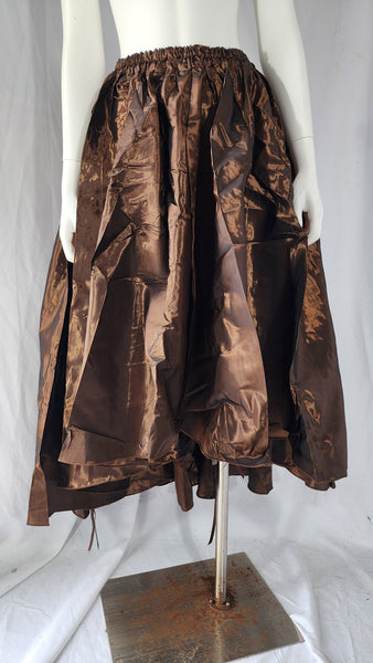 This taffeta skirt has 4 drawstring ties that can be done up in a variety of ways that make it easy to customize your garb. Check out our Tutorials page for tips and tricks.