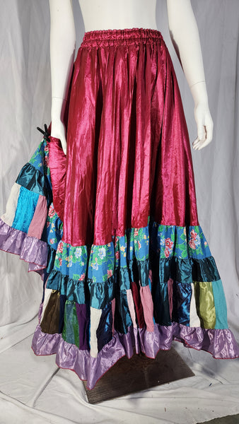 Our one-of-a-kind Liz skirts are over 25 yards of fabric when measured along the hemline, which means there’s plenty of fullness for tucks or bustles. They can be worn on their own or with an overskirt, and look lovely with any of our corsets and bodices. Check out our Getting Dressed Tutorials for fun ideas on how to wear yours!