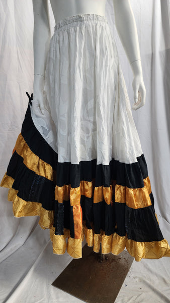 Our one-of-a-kind Liz skirts are over 25 yards of fabric when measured along the hemline, which means there’s plenty of fullness for tucks or bustles. They can be worn on their own or with an overskirt, and look lovely with any of our corsets and bodices. Check out our Getting Dressed Tutorials for fun ideas on how to wear yours!